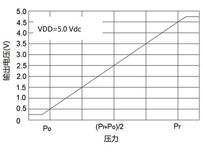 | IZLAZ=A×P B pozornost: OUT je analogni izlazni napon, mjeren u voltima; P je vrijednost tlaka, apsolutni tlak, u kPa; Pogledajte tablicu ispod za A i B. |